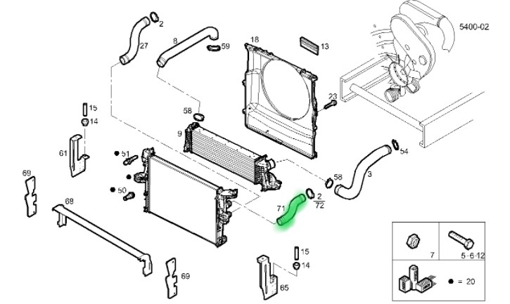 Przewód wodny przy chłodnicy – górne mocowanie.